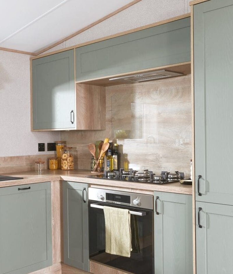 * Cuisine spacieuse en forme U de style scandinave - plan de travail 40 mm (hotte aspirante, réfrigérateur/congélateur, cuisinière, four, ...)